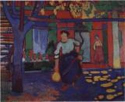 Plus que le bistro ou la porteuse d’eau qui ploie sous le poids de sa cruche, le sujet de ce tableau, c’est la couleur, même si les personnages prennent la pose comme ils le feraient pour une photo. Derain est là en pleine période fauve, il évoluera plus tard vers un style très différent.