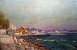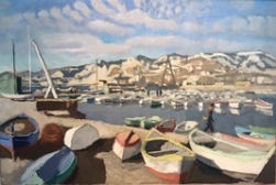 Diana fut élève puis professeur à l’Académie des Beaux-Arts de Marseille. Lui aussi membre des peintres prolétariens, il nous montre ici L’Estaque joyeuse de la promenade de la plage avec ses cafés et ses restaurants toujours présents.